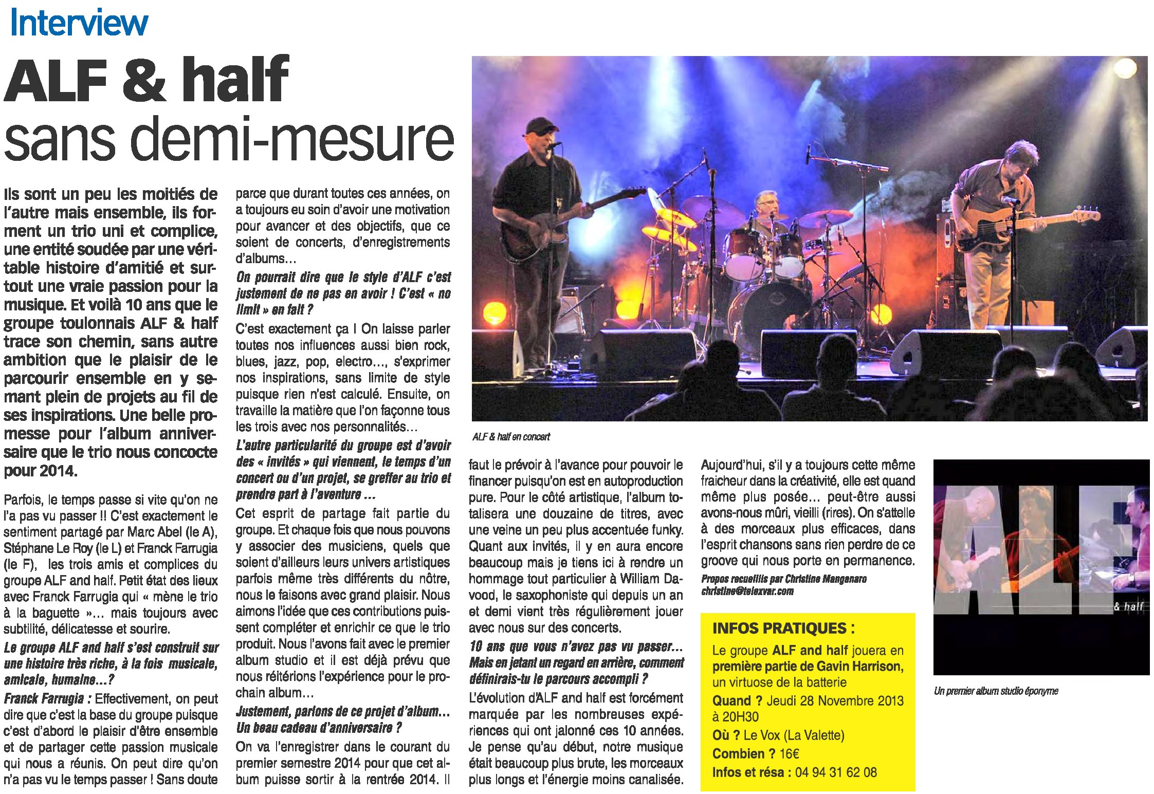 A travers les centaines de formations qui chaque année se proposent de participer au festival de JAZZ à TOULON, ALF and half est très certainement celle qui a marqué la programmation du festival 2008. COF Toulon.